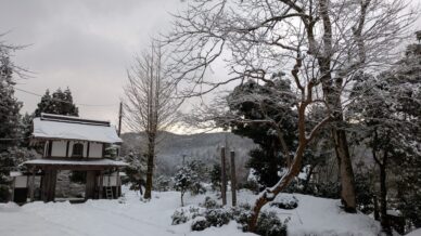 昨年もそうでしたが、12/31~1/1にかけて雪が降りました。除夜の鐘を撞き終わり、朝起きてみ見るとうっすらと雪が。山の下は雨だったんですが…。